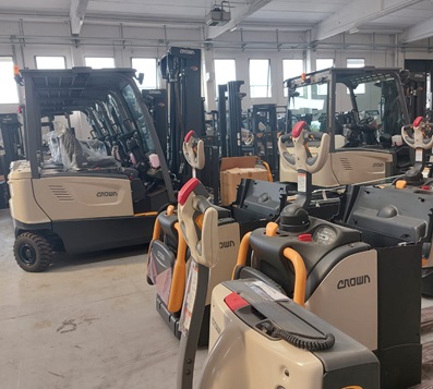 Dai piccoli transpallet manuali agli alti trilaterali, Crown infatti si occupa della progettazione, costruzione, distribuzione, assistenza e supporto di prodotti per la movimentazione di materiali "che offrono ai clienti un valore eccezionale".